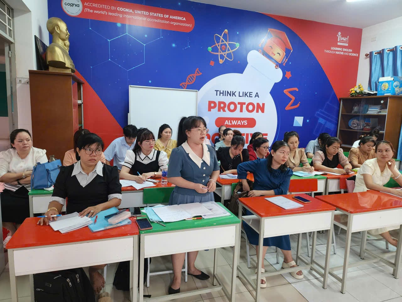 Qua chuyên đề, giáo viên trong tổ đã rút ra nhiều kinh nghiệm bổ ích, đặc biệt là kỹ thuật điều chỉnh tốc độ giảng dạy, cách sử dụng học liệu trực quan và ứng dụng công nghệ thông tin nhằm hỗ trợ việc dạy học song ngữ. Buổi sinh hoạt đã góp phần nâng cao chất lượng chuyên môn của giáo viên và tạo nền tảng để nhà trường tiếp tục nhân rộng các hoạt động dạy học tích hợp trong thời gian tới.