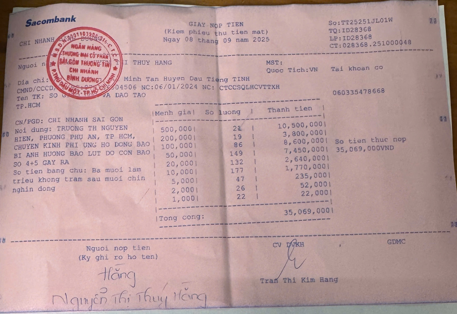Nhà trường xin trân trọng cảm ơn sự đóng góp quý báu của quý đại biểu, quý phụ huynh, toàn thể thầy cô giáo, nhân viên và các em học sinh toàn trường. Những tấm lòng nhân ái ấy không chỉ mang đến nguồn hỗ trợ thiết thực cho đồng bào vùng bão lũ, mà còn lan tỏa tinh thần sẻ chia, đoàn kết trong cộng đồng. Sự chung tay của mọi người là động lực lớn lao giúp bà con sớm vượt qua khó khăn, ổn định cuộc sống. Nhà trường rất trân trọng và ghi nhận nghĩa cử cao đẹp này.