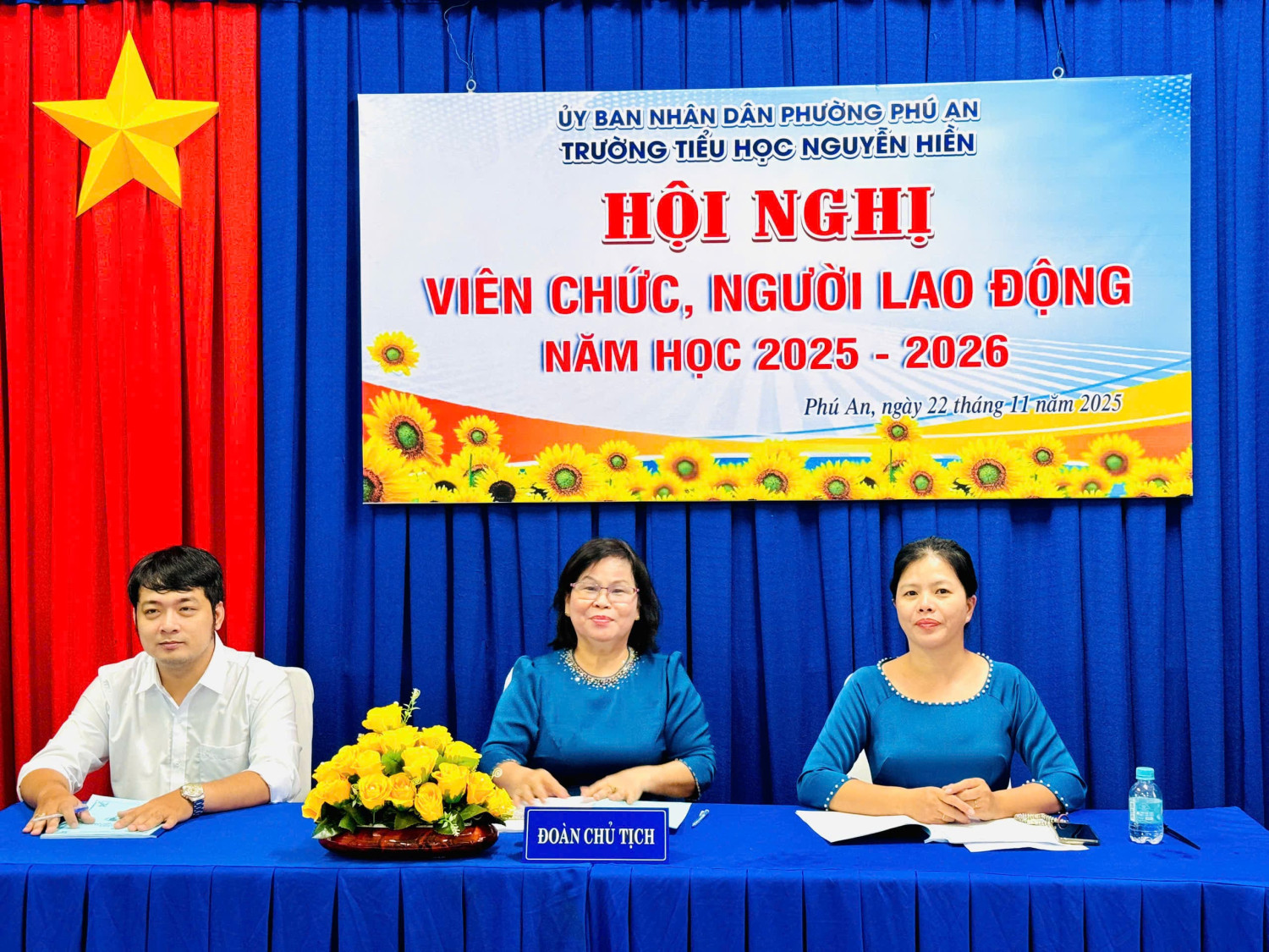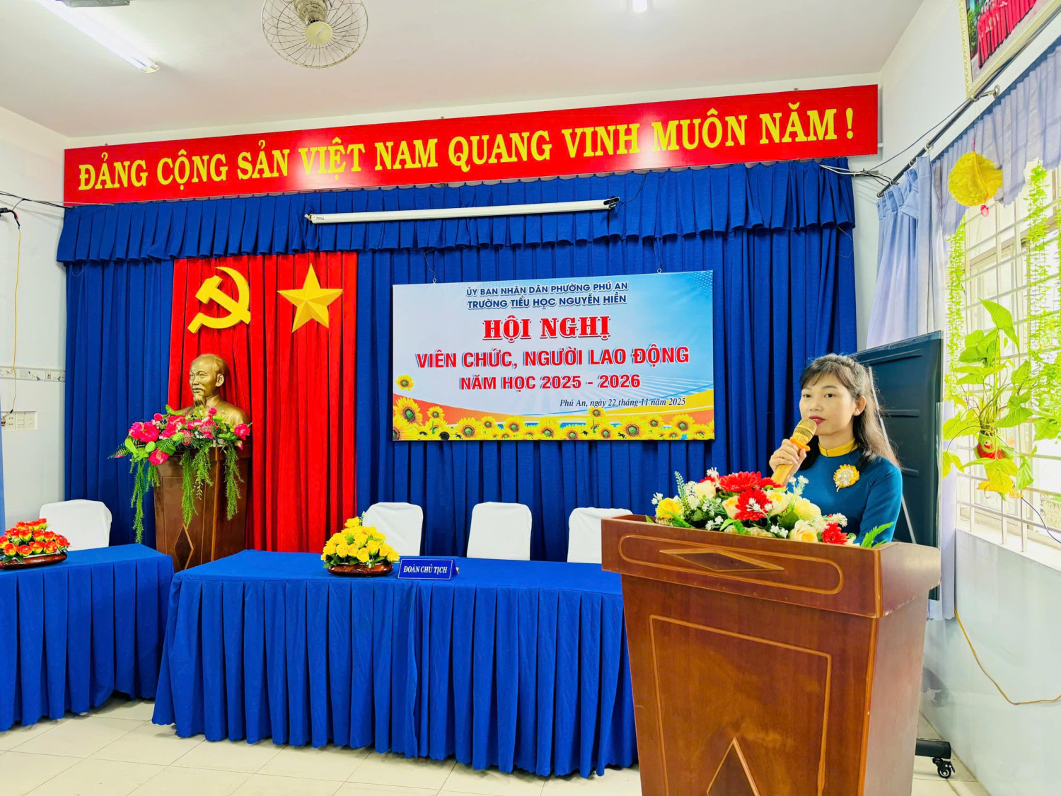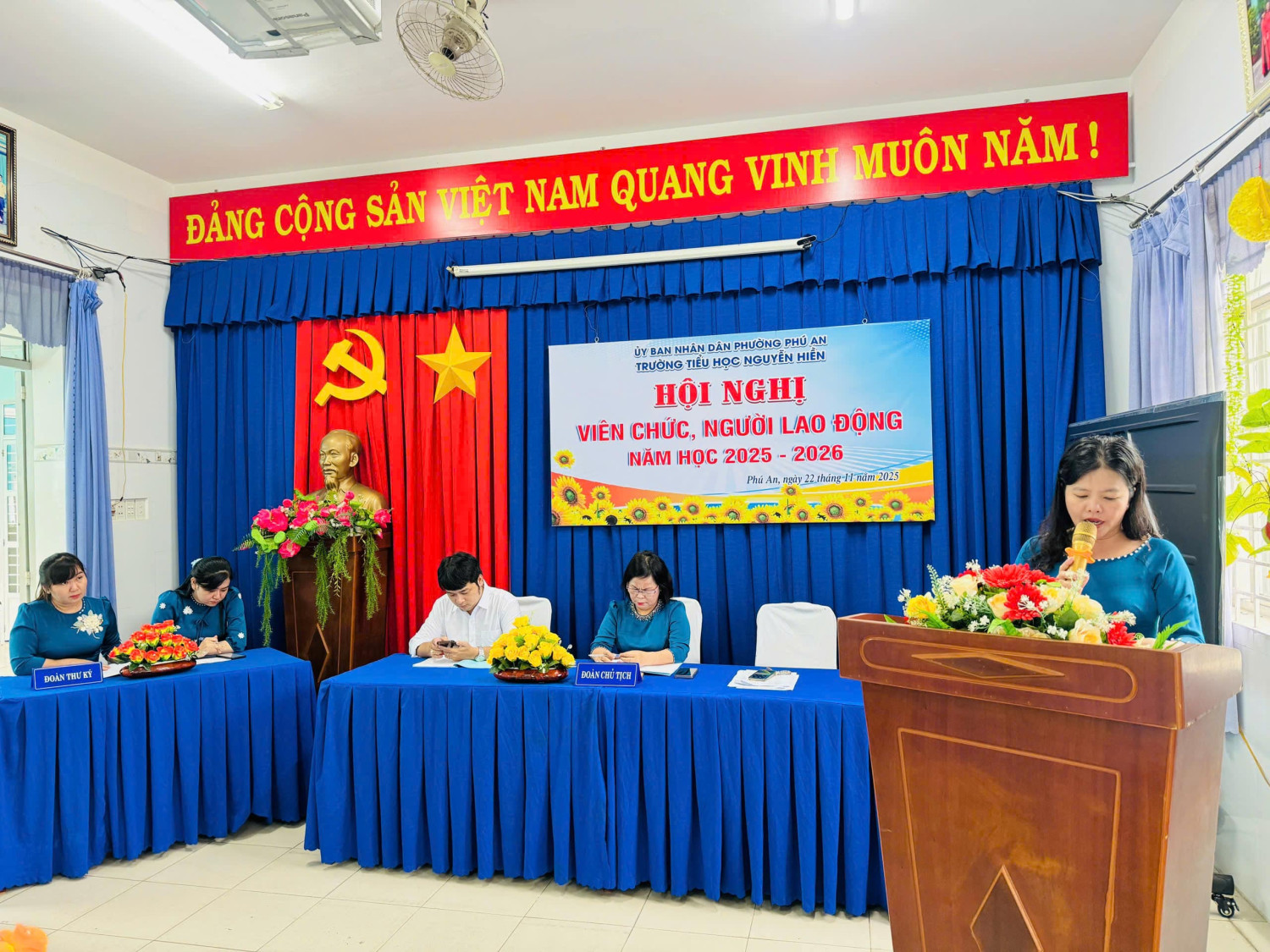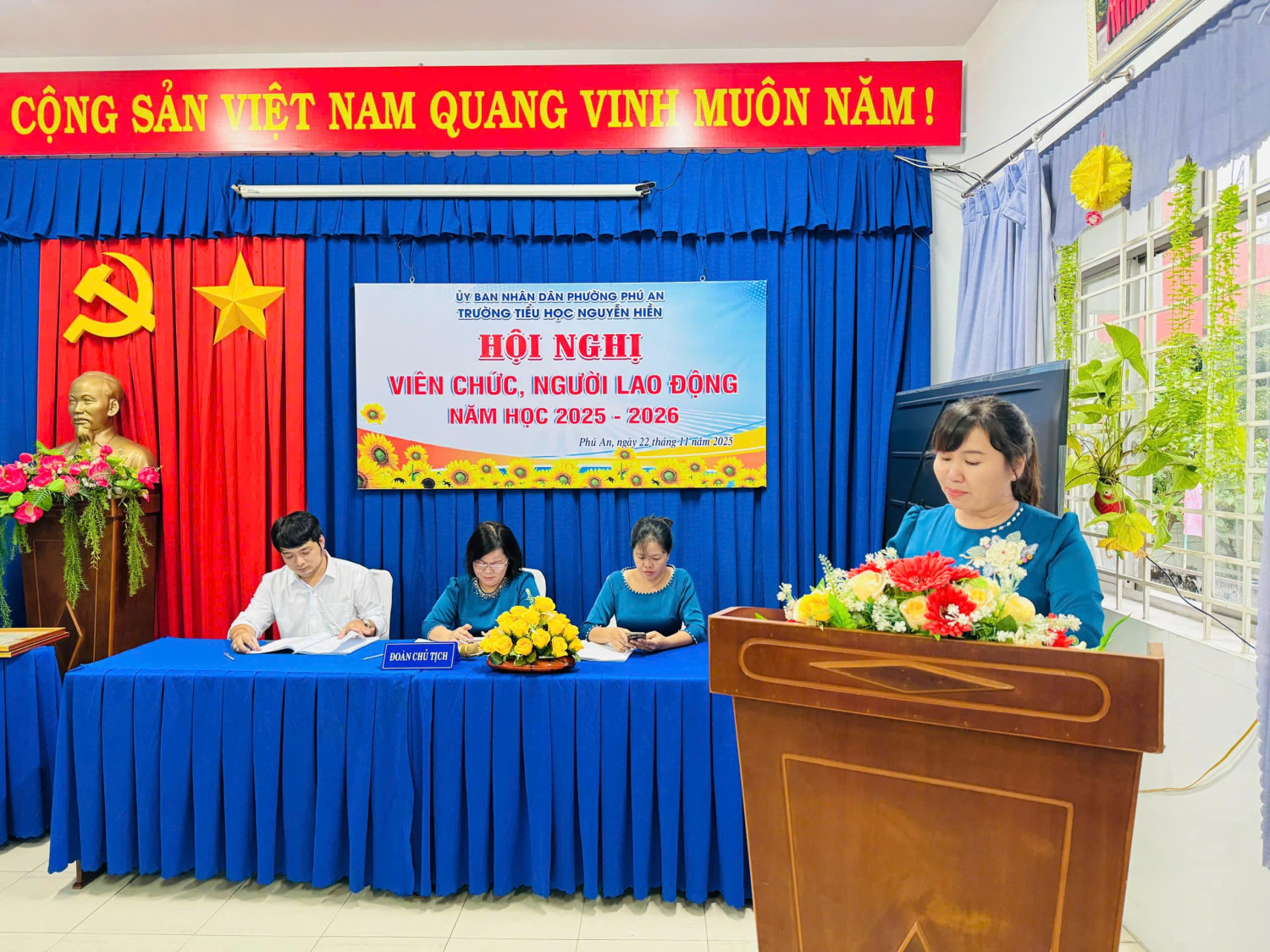 Hội nghị cán bộ, viên chức, người lao động của trường Tiểu học Nguyễn Hiền diễn ra trong không khí nghiêm túc, đoàn kết và đầy tinh thần trách nhiệm. Tại hội nghị, nhà trường đã trình bày báo cáo tóm tắt kết quả năm học 2024-2025, trong đó nêu bật những thành tích nổi bật về chất lượng dạy học, phong trào thi đua và công tác phối hợp giữa gia đình – nhà trường – xã hội. Quý đại biểu cũng được nghe và thảo luận về dự thảo kế hoạch, phương hướng nhiệm vụ cho năm học 2025-2026, nhấn mạnh mục tiêu tiếp tục đổi mới phương pháp giáo dục, nâng cao năng lực đội ngũ và xây dựng môi trường học tập hạnh phúc.