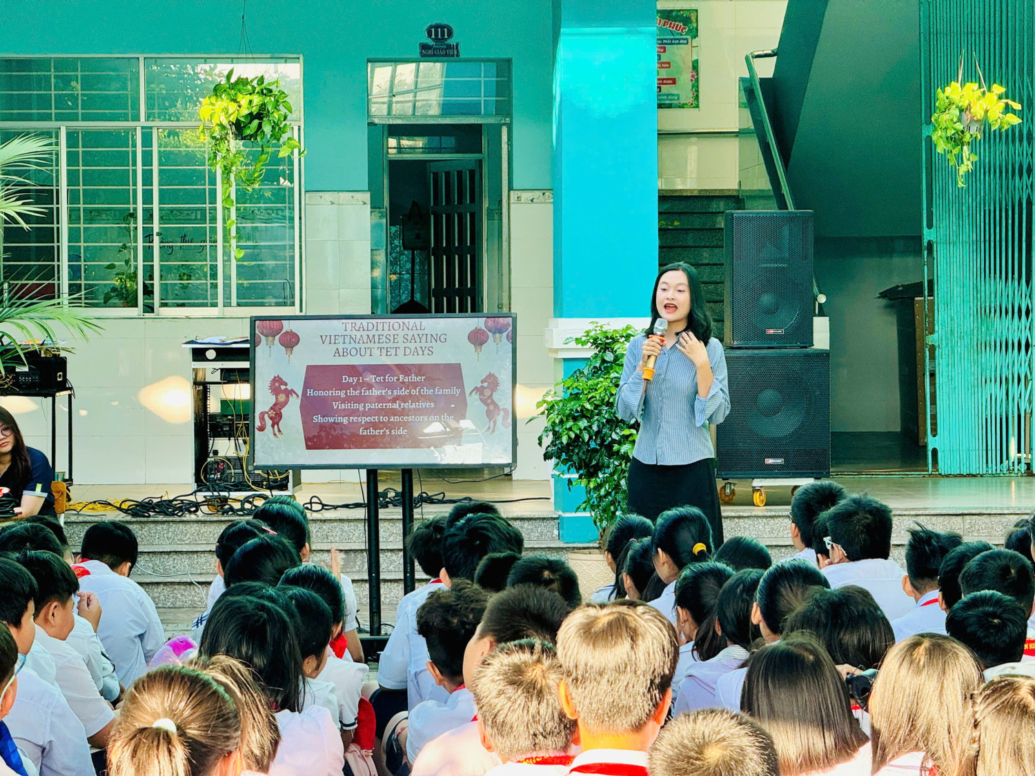 Bên cạnh đó, chương trình còn tạo cơ hội để học sinh rèn luyện sự tự tin, tinh thần hợp tác và khả năng làm việc nhóm. Không khí chương trình diễn ra sôi nổi, hào hứng, thu hút sự tham gia tích cực của toàn thể học sinh. Hoạt động “The Joy of Tết” không chỉ góp phần nâng cao chất lượng dạy học tiếng Anh mà còn giúp các em thêm yêu quý, trân trọng những giá trị văn hóa truyền thống của dân tộc. Đây là một hoạt động trải nghiệm ý nghĩa, để lại nhiều ấn tượng tốt đẹp cho học sinh và góp phần làm phong phú các hoạt động giáo dục của nhà trường.