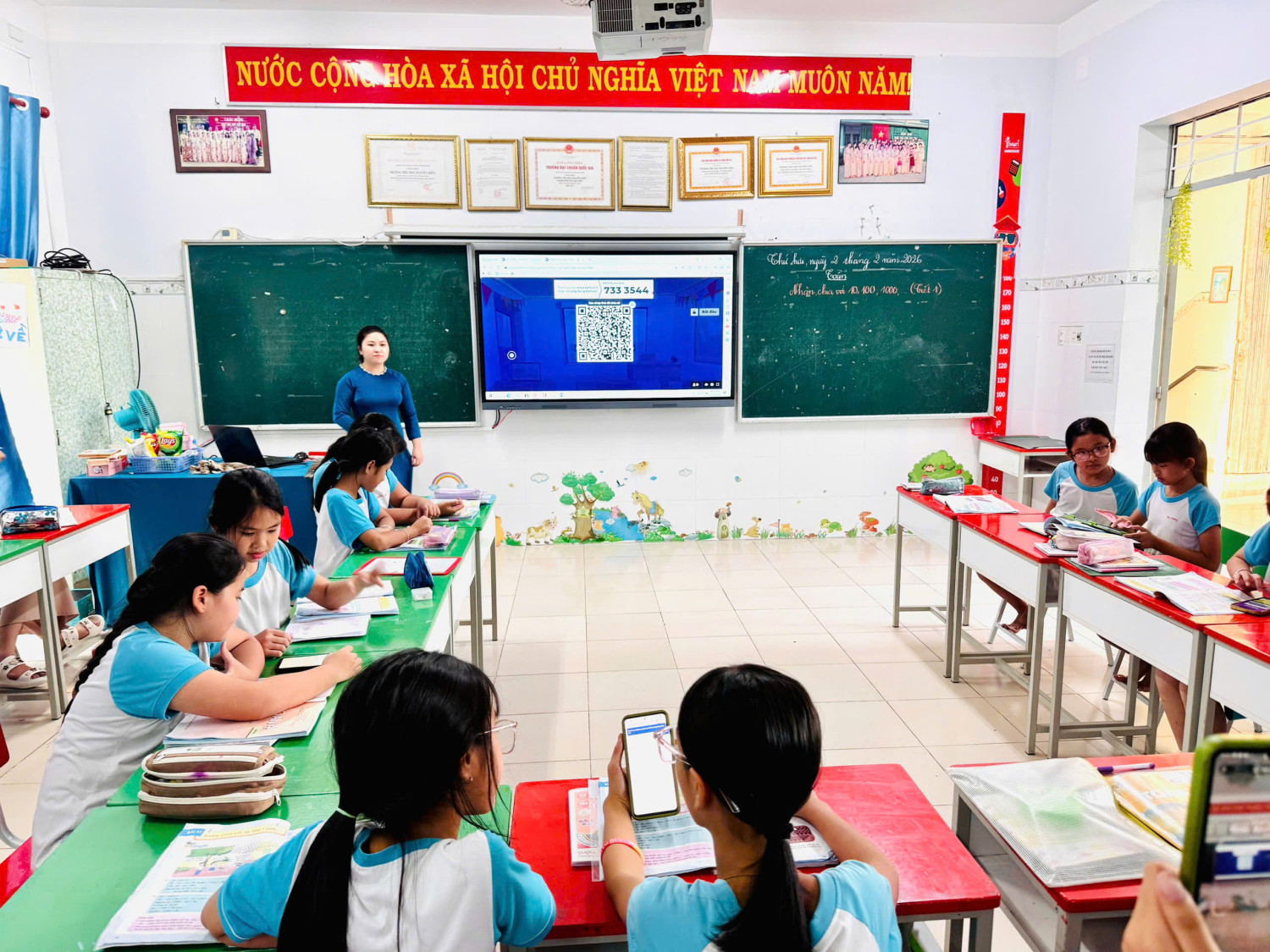 Ngày 02/02/2024, Tổ khối 4 - Trường Tiểu học Nguyễn Hiền đã triển khai thực hiện chuyên đề “NÂNG CAO HỨNG THÚ HỌC TOÁN CHO HỌC SINH LỚP 4 QUA VIỆC ỨNG DỤNG TRÍ TUỆ NHẬN TẠO AI” với tinh thần đổi mới và sáng tạo. Thông qua việc sử dụng các công cụ AI, giáo viên đã thiết kế bài giảng sinh động, cá nhân hóa nội dung học tập phù hợp với năng lực từng học sinh. Học sinh được trải nghiệm các bài tập tương tác, nhận phản hồi nhanh và chính xác, từ đó nâng cao khả năng tư duy và giải quyết vấn đề Toán học.