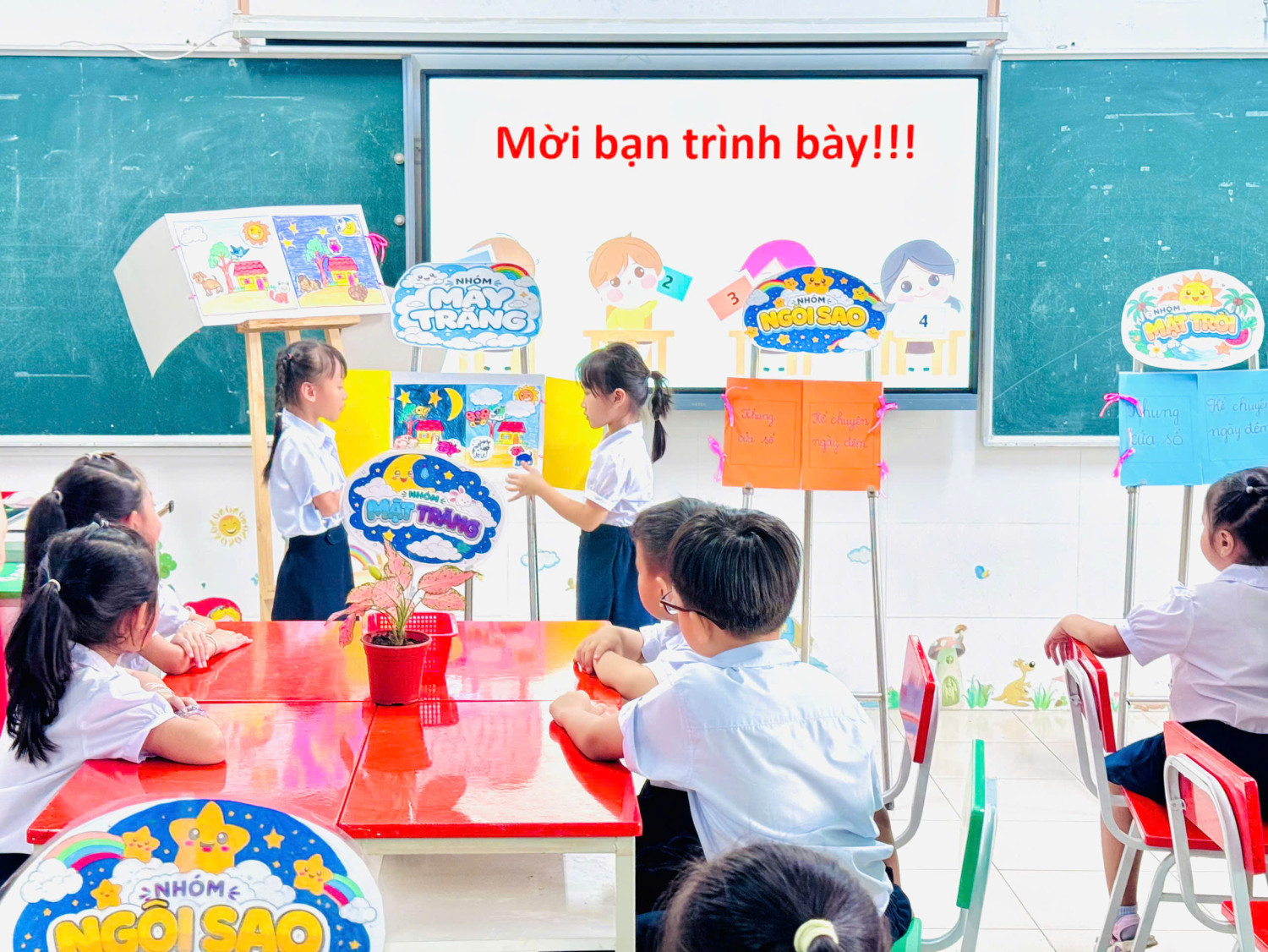 Chiều ngày 23/4/2026, được sự đồng ý của Ban giám hiệu nhà trường Tiểu học Nguyễn Hiền, tổ chuyên môn khối 1 thực hiện chuyên đề thông qua hoạt động “Cùng khám phá bầu trời” với hành trình STEM “Khung cửa sổ kể chuyện ngày đêm” đã mang lại nhiều hiệu quả tích cực trong dạy học. Hoạt động được thiết kế phù hợp với đặc điểm tâm lí lứa tuổi, giúp học sinh hứng thú và chủ động tham gia. Thông qua quá trình quan sát và tìm hiểu, các em bước đầu nhận biết và phân biệt được đặc điểm của bầu trời ban ngày và ban đêm. Việc tích hợp kể chuyện giúp học sinh phát triển ngôn ngữ, khả năng diễn đạt và trí tưởng tượng.