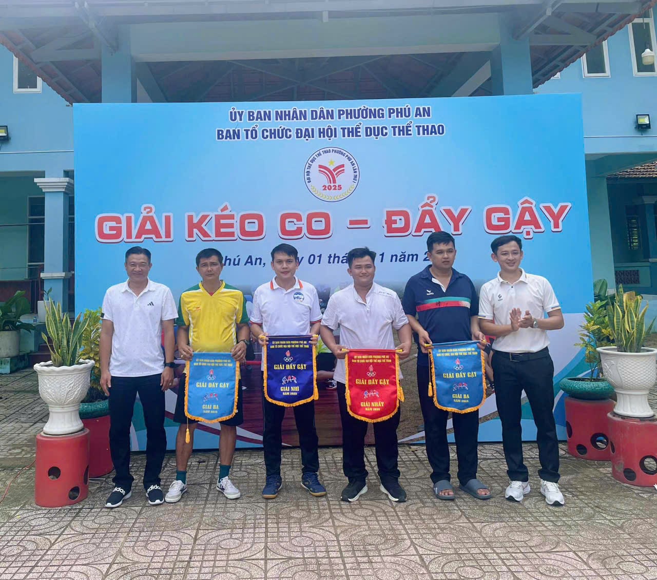 Ngày 01/11/2025, cán bộ, giáo viên và nhân viên Trường Tiểu học Nguyễn Hiền hào hứng tham gia Giải kéo co – Đẩy gậy do UBND phường Phú An tổ chức. Đây là hoạt động nằm trong chuỗi phong trào thi đua rèn luyện sức khỏe và tăng cường tinh thần đoàn kết giữa các đơn vị trên địa bàn phường. Ngay từ sáng sớm, không khí tại sân thi đấu đã trở nên sôi nổi, tràn đầy tiếng cười và cổ vũ.