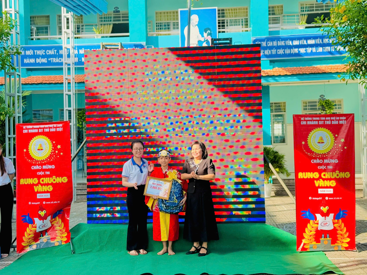 Cuộc thi Rung chuông vàng do Trường Tiểu học Nguyễn Hiền phối hợp với Chi nhánh SIT Thủ Dầu Một – Hệ thống Anh ngữ Âu Châu tổ chức đã diễn ra sôi nổi và đầy ý nghĩa. Chương trình thu hút đông đảo học sinh tham gia với tinh thần hào hứng, tự tin và quyết tâm chinh phục thử thách. Nội dung câu hỏi phong phú, phù hợp với lứa tuổi, kết hợp giữa kiến thức học tập và kỹ năng tiếng Anh, giúp các em vừa học vừa chơi hiệu quả.