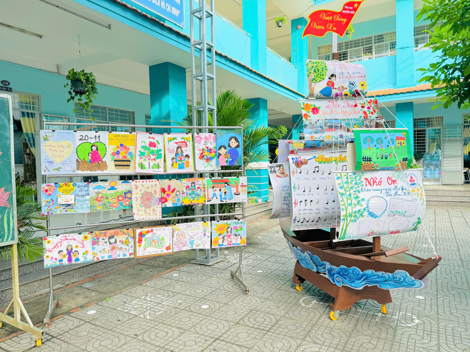 Song hành cùng đó, hội thi Thiết kế thiệp sáng tạo đã trở thành nơi gửi gắm bao tình cảm chân thành. Từng tấm thiệp được cắt dán tỉ mỉ, từng lời chúc ngây thơ mà xúc động như làm sống lại hình ảnh những buổi ngồi nắn nót từng dòng chữ tặng thầy cô năm nào. Nhìn những tác phẩm bé nhỏ mà chứa đựng bao yêu thương, ai cũng cảm nhận được rằng tình thầy trò luôn là sợi dây bền chặt nối dài qua nhiều thế hệ.