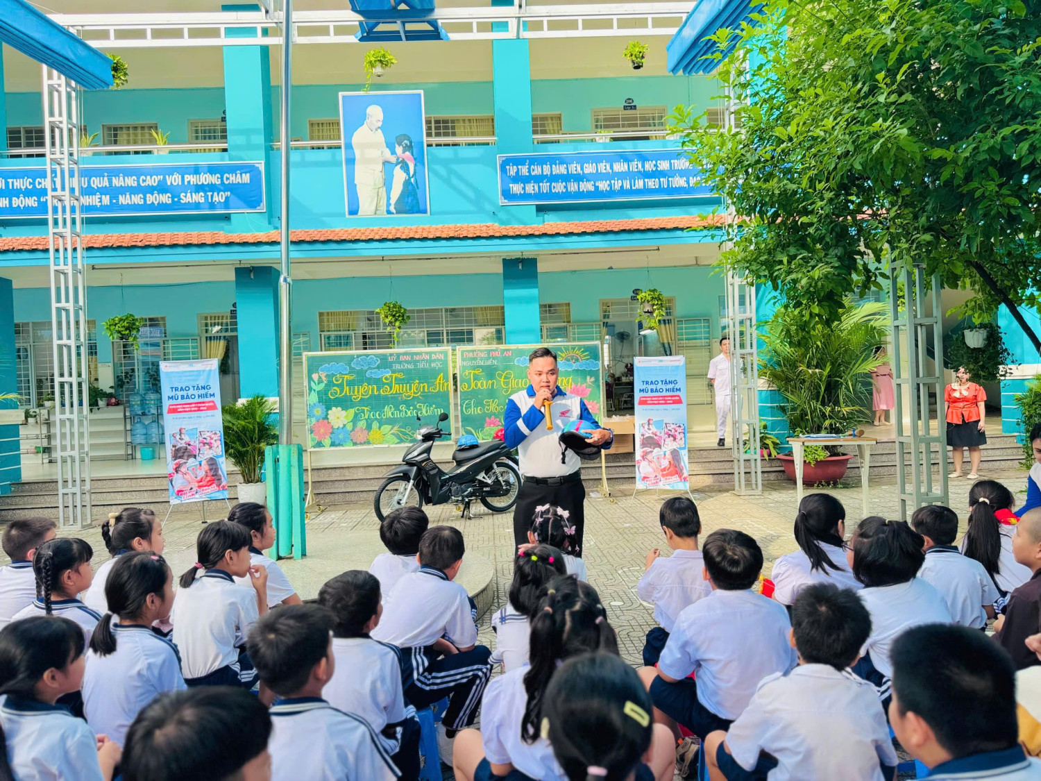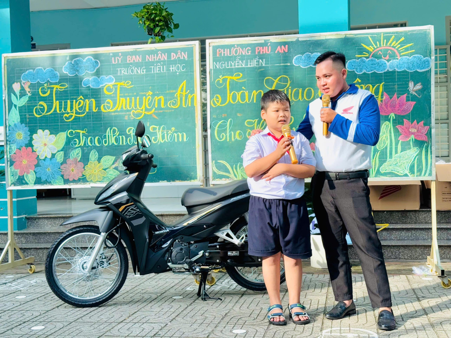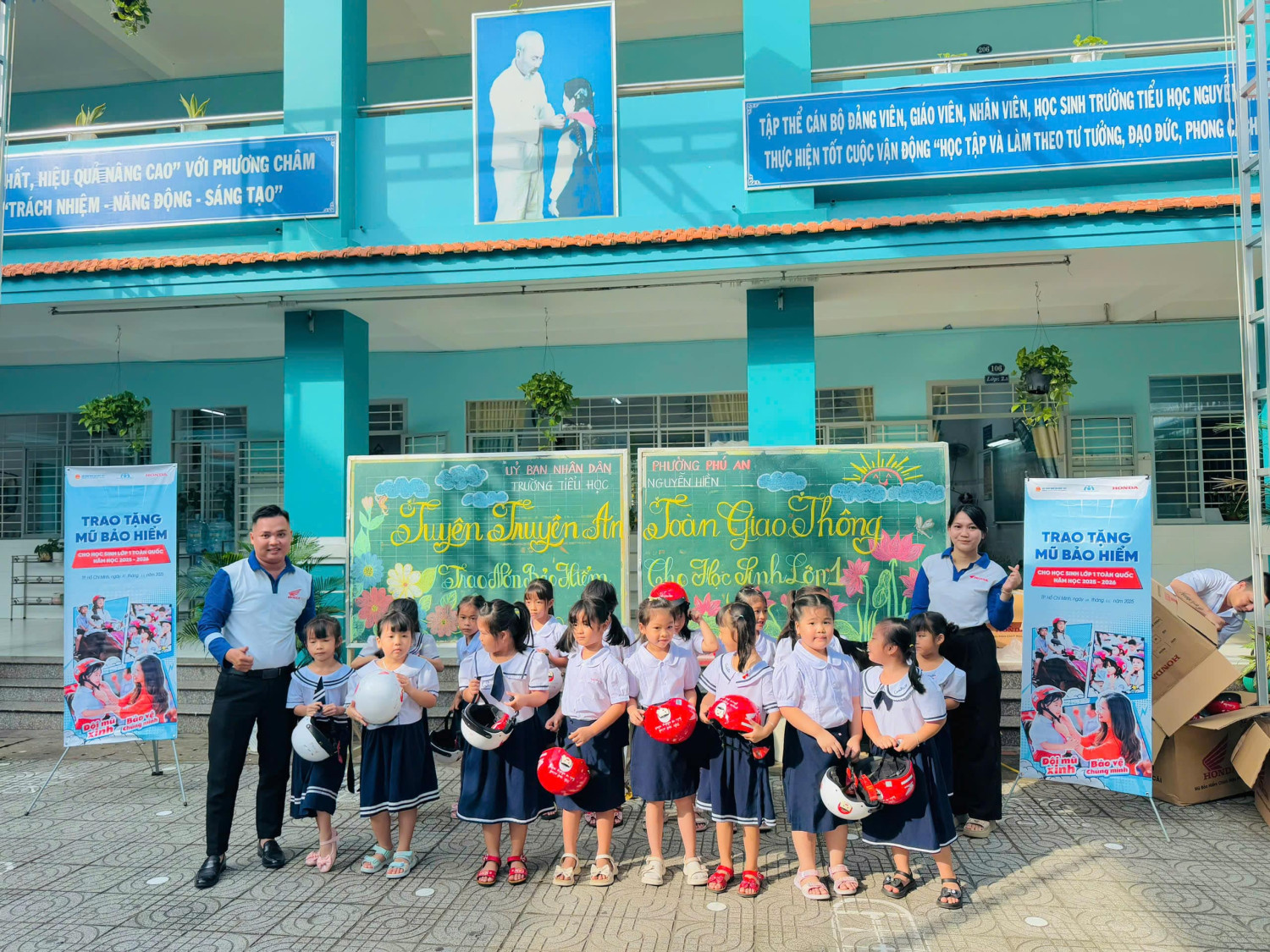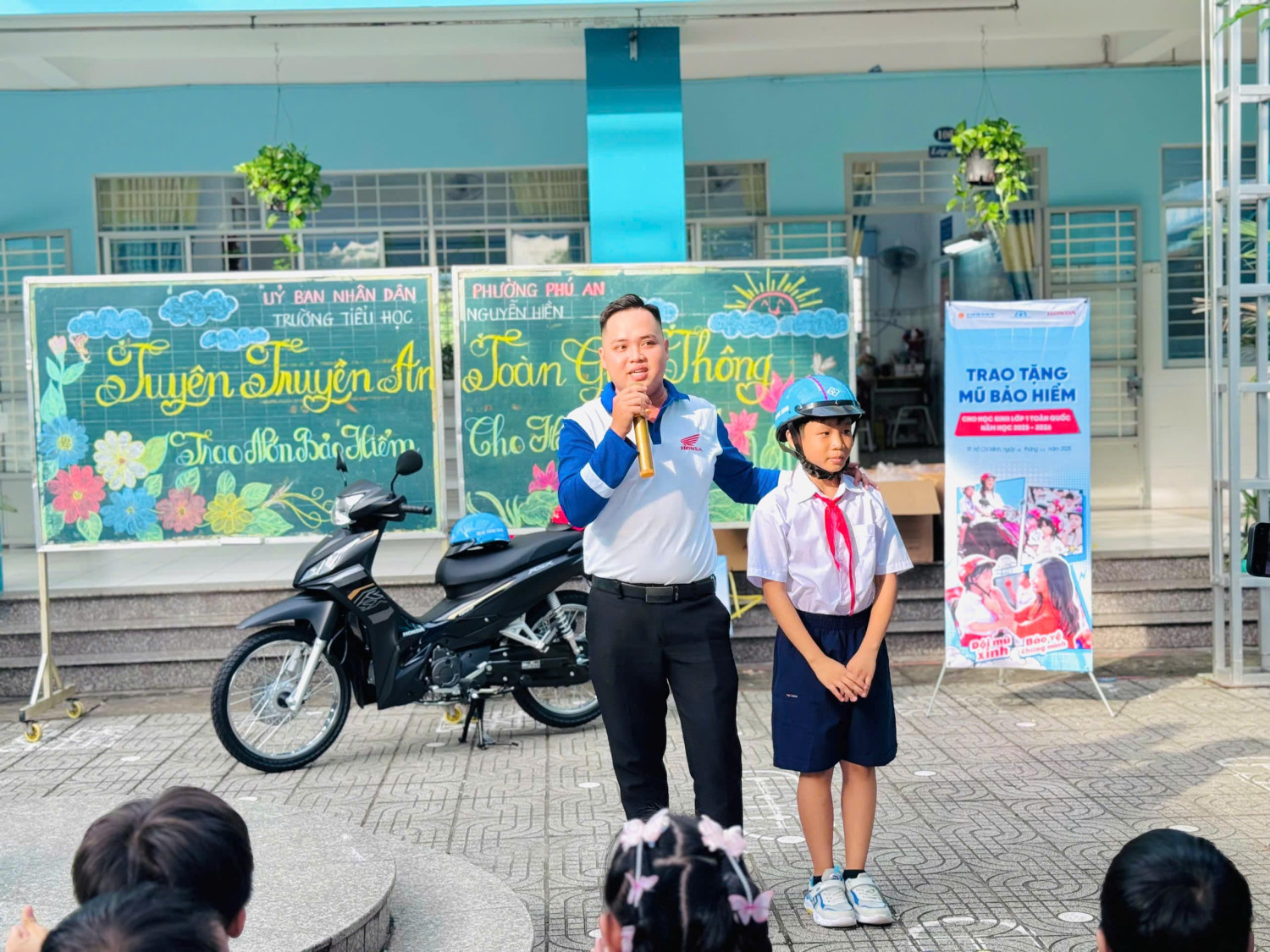 Một phần được các em mong đợi chính là hoạt động trao tặng nón bảo hiểm đạt chuẩn. Từng chiếc nón mới, vừa vặn, nhiều màu sắc đã được trao tận tay các em với lời nhắn “Đội nón vào – an toàn theo cùng”. Nhiều học sinh tỏ ra rất thích thú khi được thử và điều chỉnh nón ngay tại chỗ. Phụ huynh cũng bày tỏ sự yên tâm khi con mình được trang bị đúng quy định.