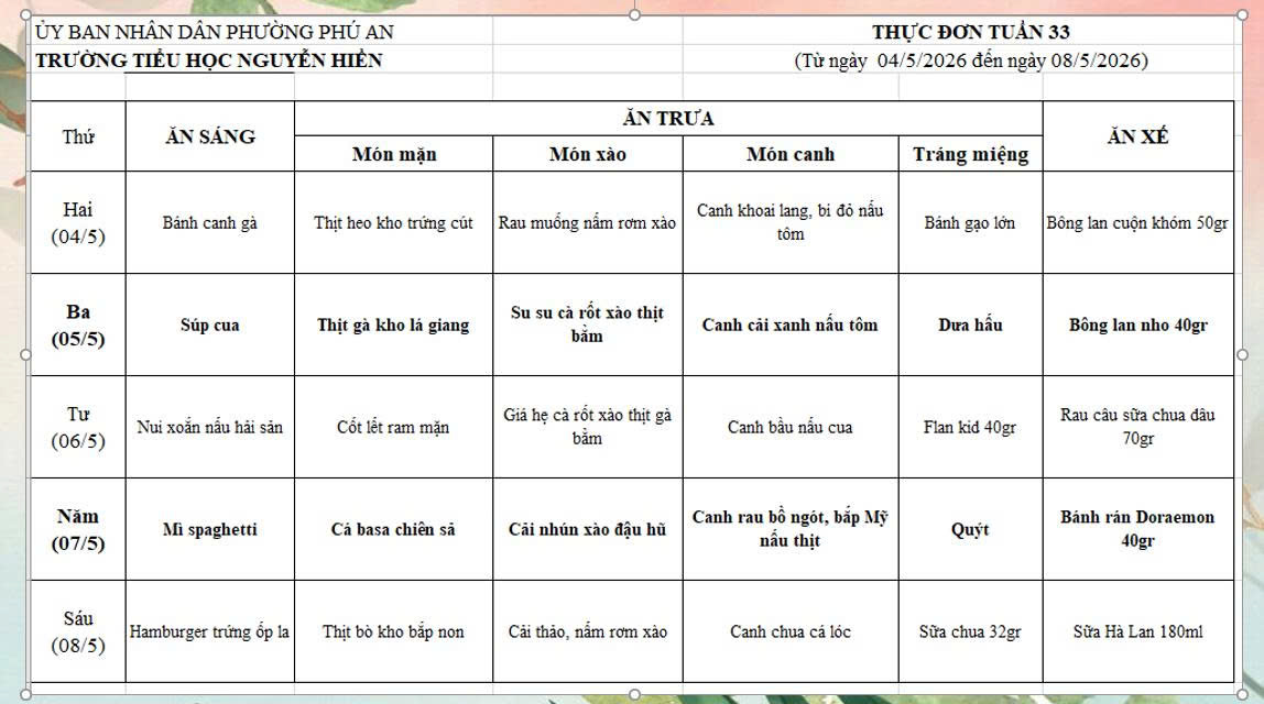 Thực đơn tuần 33