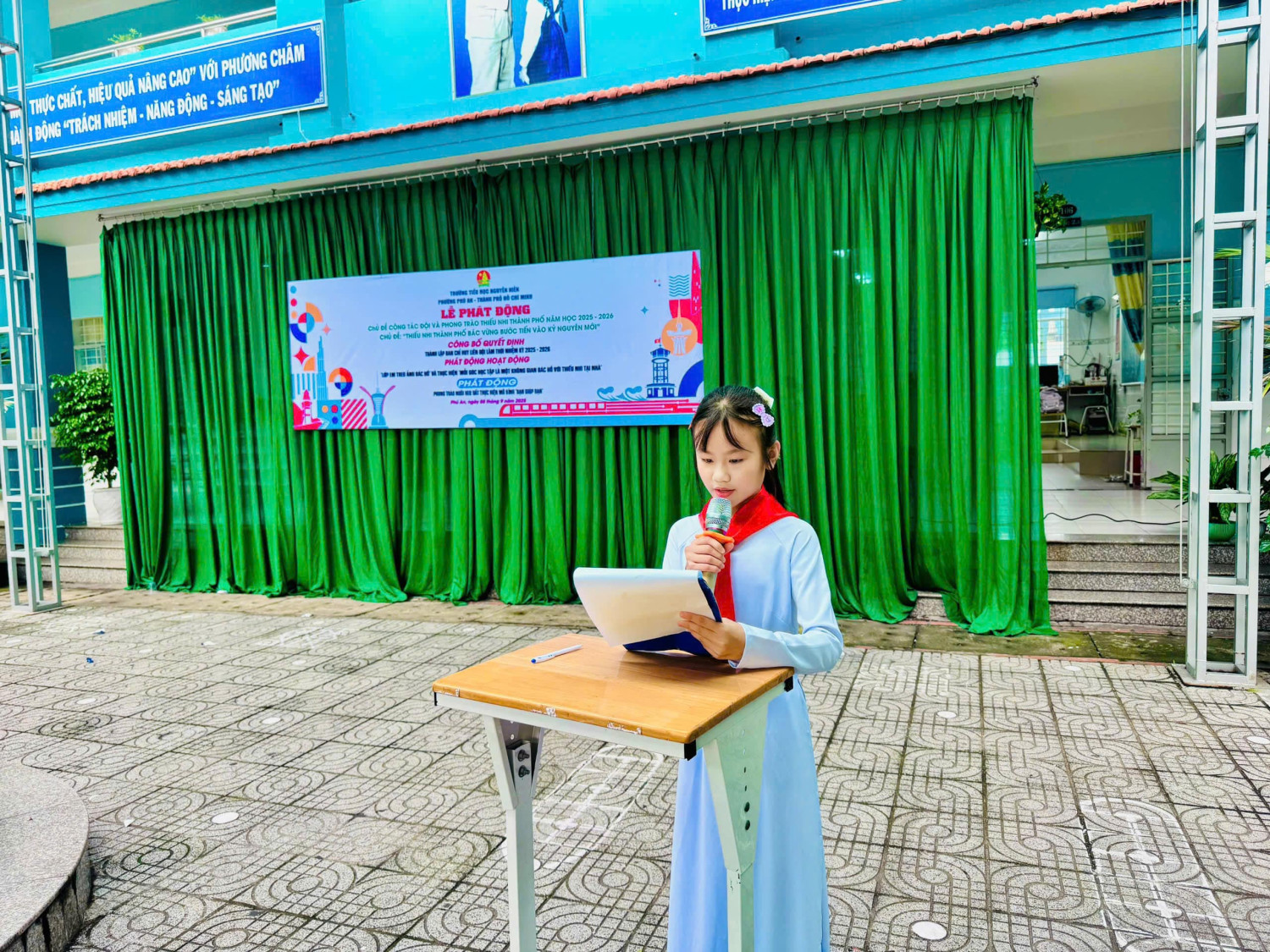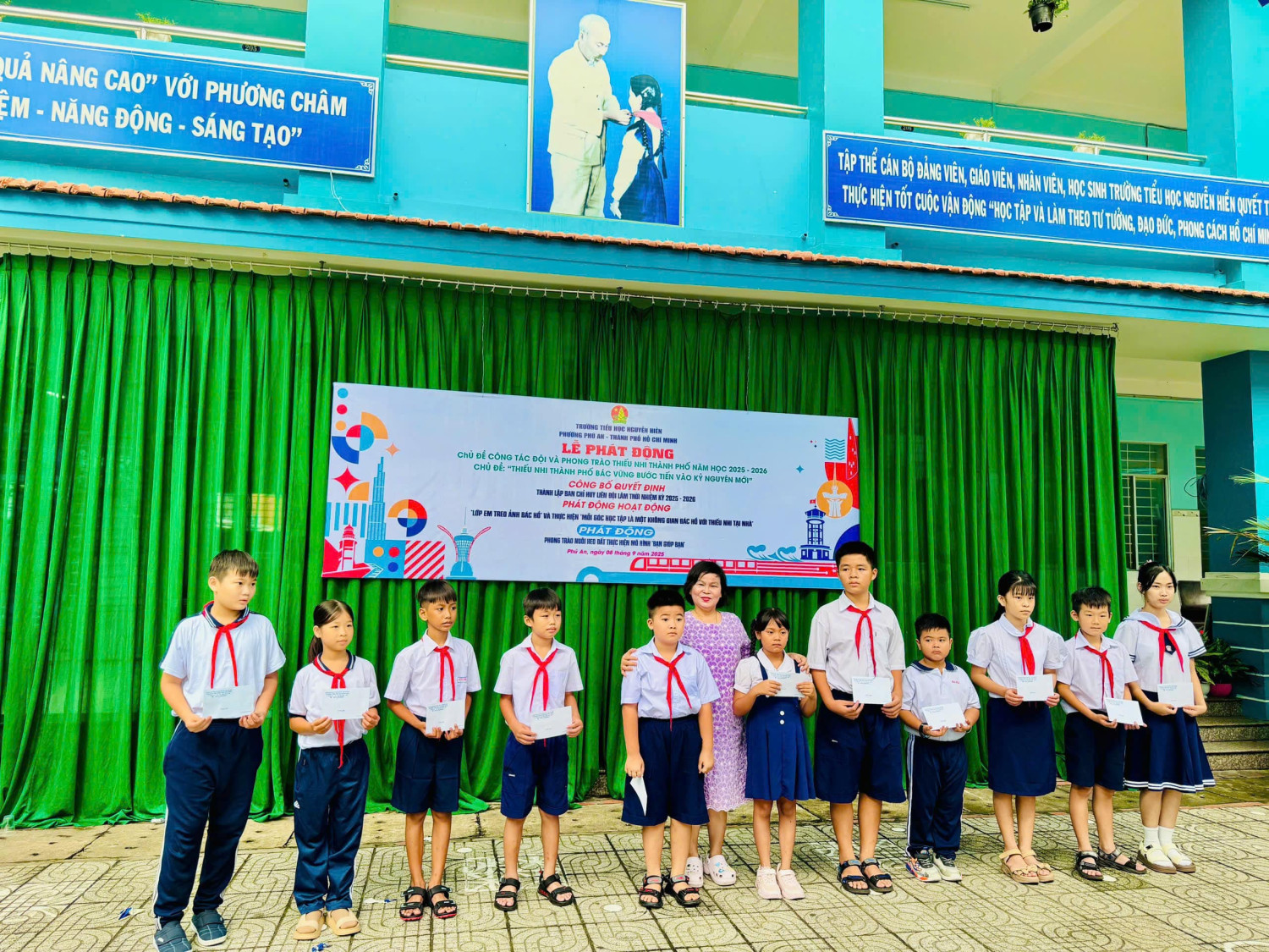 Sáng ngày 08/9/2025, Liên đội Trường Tiểu học Nguyễn Hiền long trọng tổ chức Lễ phát động chủ đề công tác Đội và phong trào thiếu nhi năm học 2025 – 2026. Với chủ đề: “Thiếu nhi Thành phố Bác – Vững bước tiến vào kỷ nguyên mới”, kết hợp phát động xây dựng Không gian văn hóa Hồ Chí Minh thông qua các hoạt động “Lớp em treo ảnh Bác Hồ” và “Mỗi góc học tập là một không gian Bác Hồ với thiếu nhi tại nhà” đồng thời phát động Phong trào Nuôi heo đất “Bạn giúp bạn”. Đến tham dự buổi lễ có: