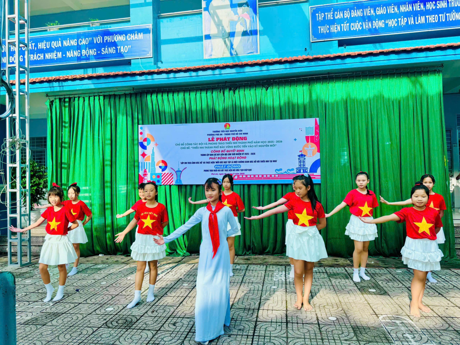 Và cùng toàn thể quý thầy cô chủ nhiệm các lớp. Đặc biệt, buổi lễ còn có sự tham gia sôi nổi của hơn 916 em thiếu nhi, nhi đồng trong toàn Liên đội. Trong chương trình, các em học sinh đã được nghe phổ biến phương hướng, nhiệm vụ trọng tâm của công tác Đội trong năm học mới; đồng thời thể hiện quyết tâm thi đua học tập, rèn luyện đạo đức, kỹ năng sống, tích cực tham gia các hoạt động văn hóa – văn nghệ, thể dục – thể thao và phong trào “Nghìn việc tốt”. Lễ phát động không chỉ khơi dậy niềm tự hào, ý thức trách nhiệm trong từng đội viên mà còn là lời cam kết của tập thể Liên đội Trường Tiểu học Nguyễn Hiền: Ra sức thi đua, đoàn kết, sáng tạo, quyết tâm hoàn thành xuất sắc các chỉ tiêu, phong trào trong năm học 2025 – 2026. Tin tưởng rằng với tinh thần hăng hái, nhiệt huyết, Liên đội Tiểu học Nguyễn Hiền sẽ tiếp tục đạt được nhiều thành tích tiêu biểu, góp phần vào sự phát triển vững mạnh của công tác Đội và phong trào thiếu nhi thành phố.