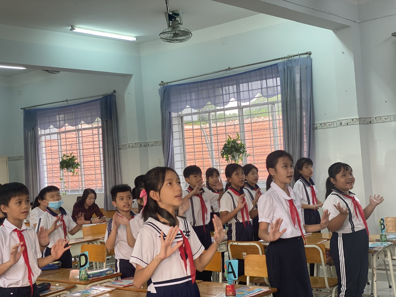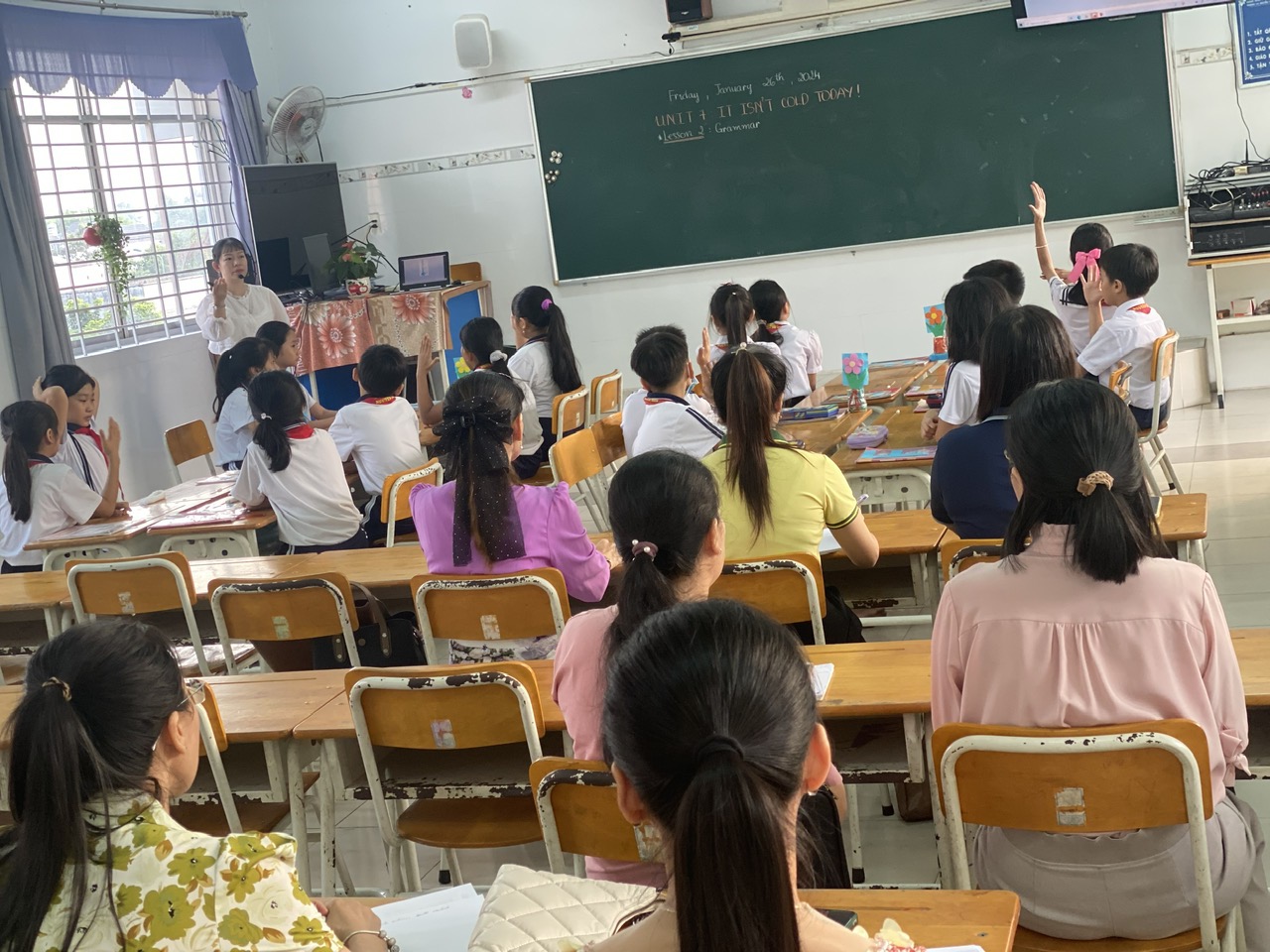 Cô Trần Thị Ngọc Ngân thực hiện tiết thao giảng môn tiếng Anh 4
